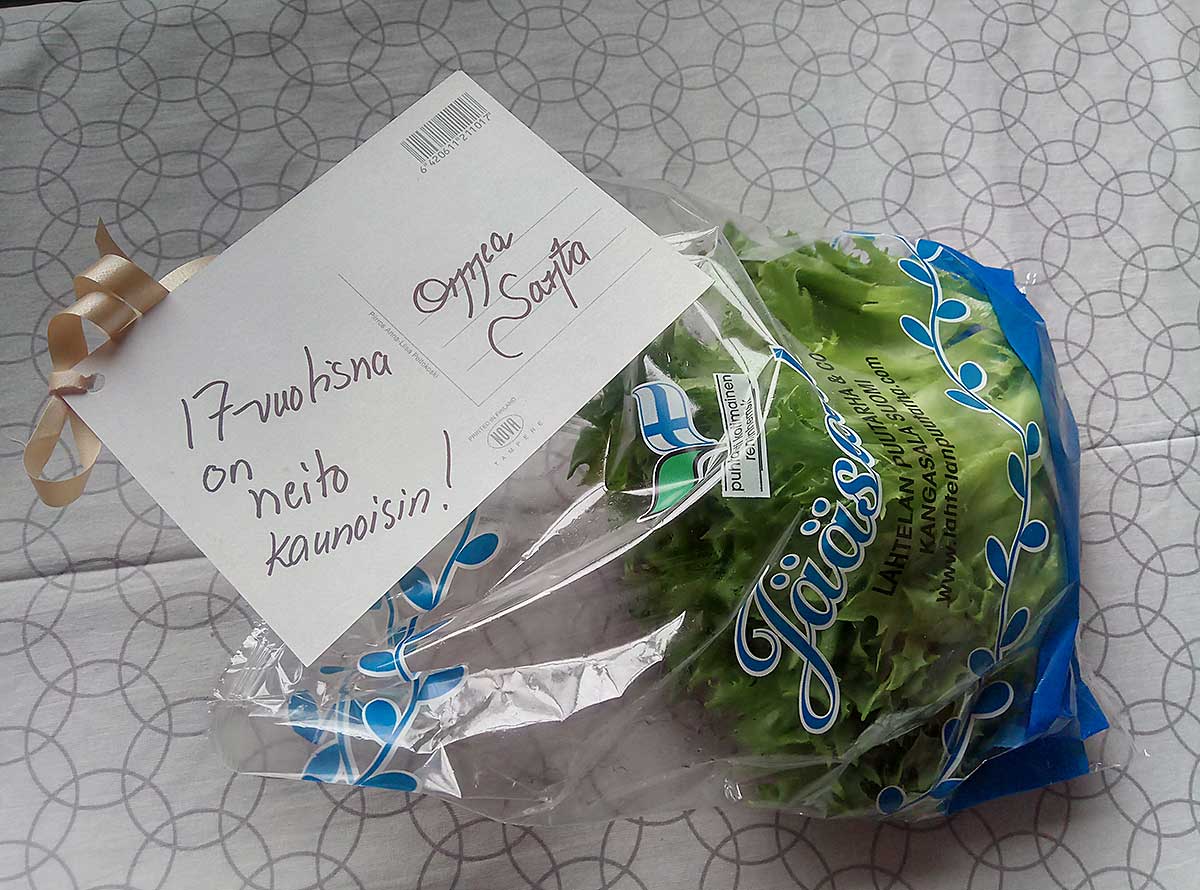 Sankari nautiskeli salaattia, jauhoja ja rypsiherkkua!
